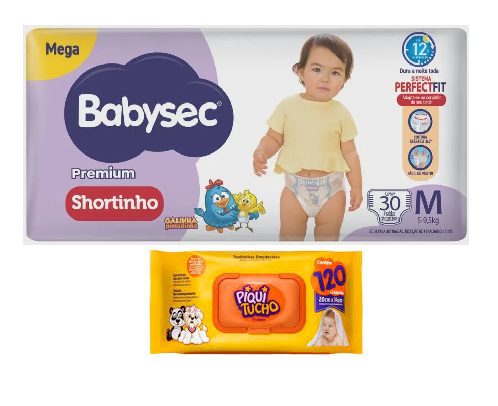 Kit Fralda Babysec Tamanho M com 30 Fraldas + Lenço Umedecido quantidade